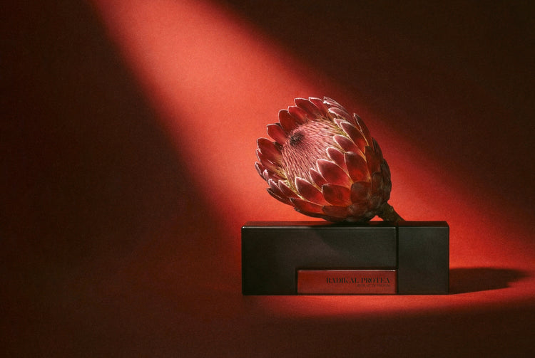 Découvrez Radikal Protea, un parfum floral et lumineux inspiré de la protea d’Afrique du Sud, aux notes de pamplemousse, rose de Bulgarie et ambre blanc