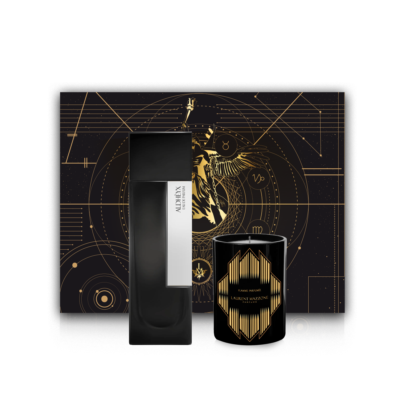 Immerse yourself in the captivating world of Aldhèyx, an exclusive gift set uniting the iconic Aldhèyx Extrait de Parfum 100 ml and its matching Aldhèyx Candle 250 g.